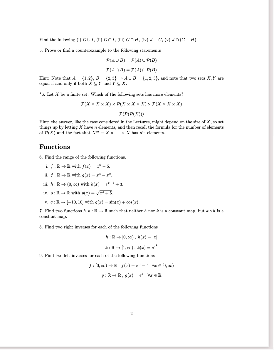 Solved Discrete Mathematics Problems On Sets And Function Chegg Com
